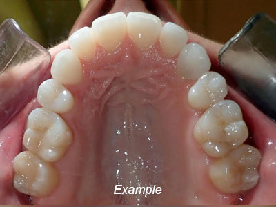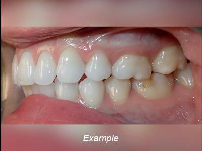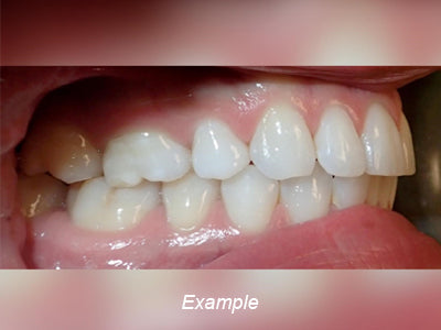 Bite down on your regular bite with back teeth touching. Pull back your right cheek as far as you can. Snap picture looking directly at the right side of your mouth.