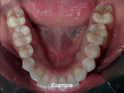 Bite down on your regular bite with back teeth touching. Pull back your left cheek as far as you can. Snap picture looking directly at the left side of your mouth.